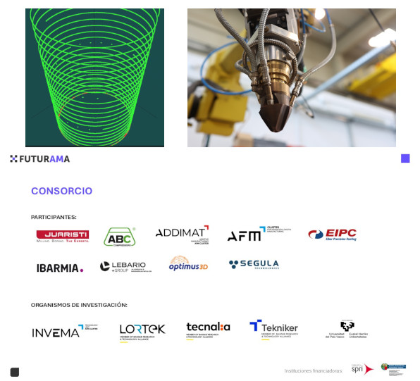 El proyecto FUTURAMA tiene como objetivo principal aumentar la fiabilidad y autonomía de las máquinas de fabricación aditiva metálica por deposición de energía directa (DED), que actualmente requieren, debido a la complejidad del proceso y los fallos potenciales (defectos geométricos o porosidades), una supervisión constante de su funcionamiento. Para ello, se desarrollarán sensores avanzados, modelos de autoaprendizaje y herramientas de simulación que permitan controlar de forma precisa variables críticas como la temperatura y geometría de los componentes. Estas innovaciones se aplicarán en sectores como el aeronáutico, petroquímico y ferroviario, con el fin de posicionar a Euskadi como referente en fabricación aditiva avanzada. Además, el proyecto busca producir componentes de gran tamaño sin desperdicio de material, alineándose con el Plan de Ciencia, Tecnología e Innovación Euskadi 2030 y los objetivos europeos de sostenibilidad y digitalización, fomentando una industria más eficiente y respetuosa con el medio ambiente.