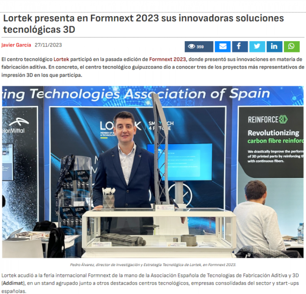 El centro tecnológico LORTEK participó en la pasada edición de Formnext 2023, donde presentó sus innovaciones en materia de fabricación aditiva. En co...