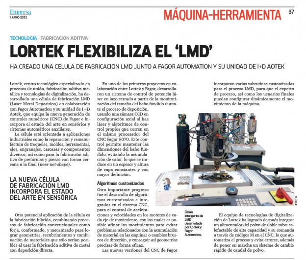 La nueva célula de fabricación LMD incorpora el estado del arte en sensórica